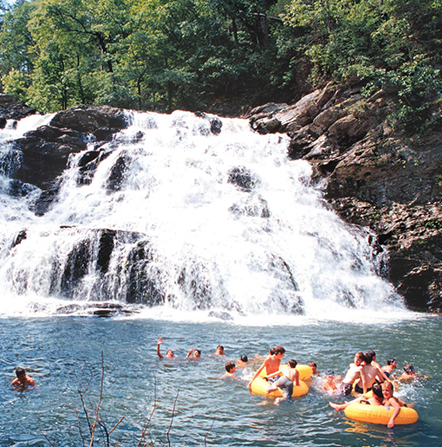 you wind along Cheaha Road until, suddenly, you round a bend to find yourself looking at what appears to be a quaint village of forest-green buildings arranged on each side of the road and tucked into a glade of graceful pines. Far below you, twin lakes glint through the trees. This is Camp Mac, unspoiled by the decades, immaculately kept, and perfectly equipped to provide memories that will last a lifetime.