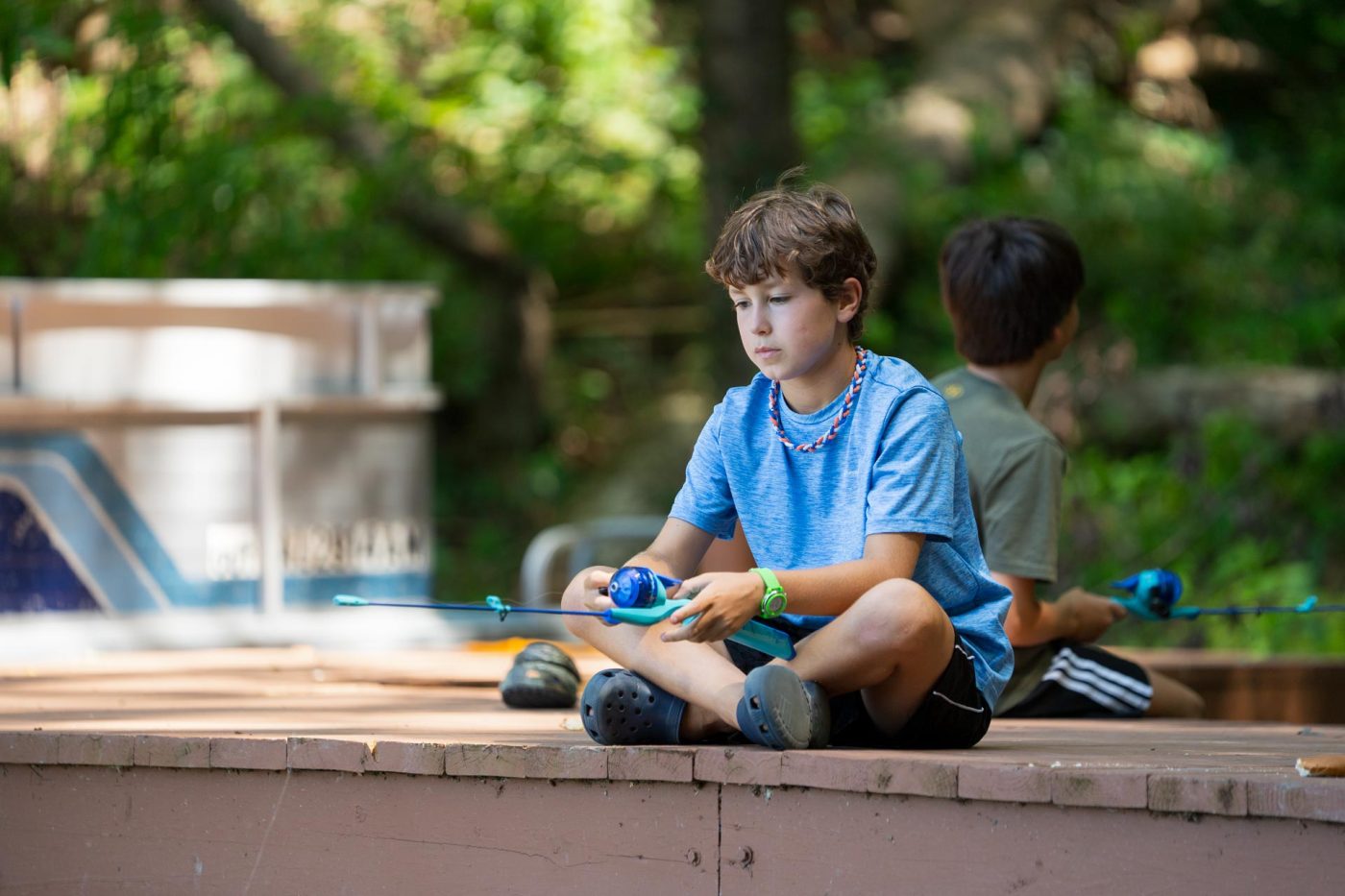Today at fishing, the boys went down to the camp mac fishing hole and caught some fish.