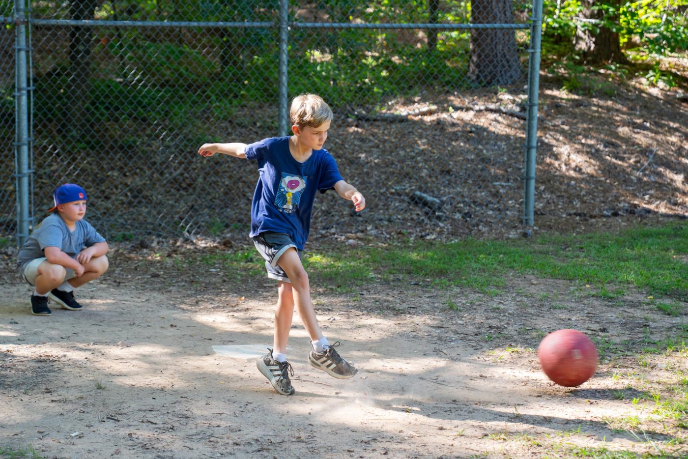Today on the sunny field one, Thomas' Goats crushed Liles' Square Floor Tiles in an intense game of kickball. From the Goats, Everett Lang played exceptionally, and from the Tiles, Jackson Klinger played boldly.