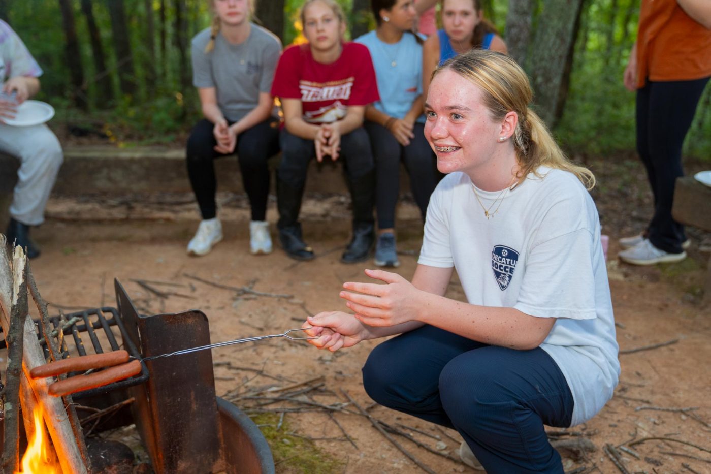 From the Dining Hall This morning we had sausage, eggs, cinnamon rolls, and grits.  For lunch, we had taco salad and cookies.  For Dinner, there was hotdogs, beans, chips, and smores.