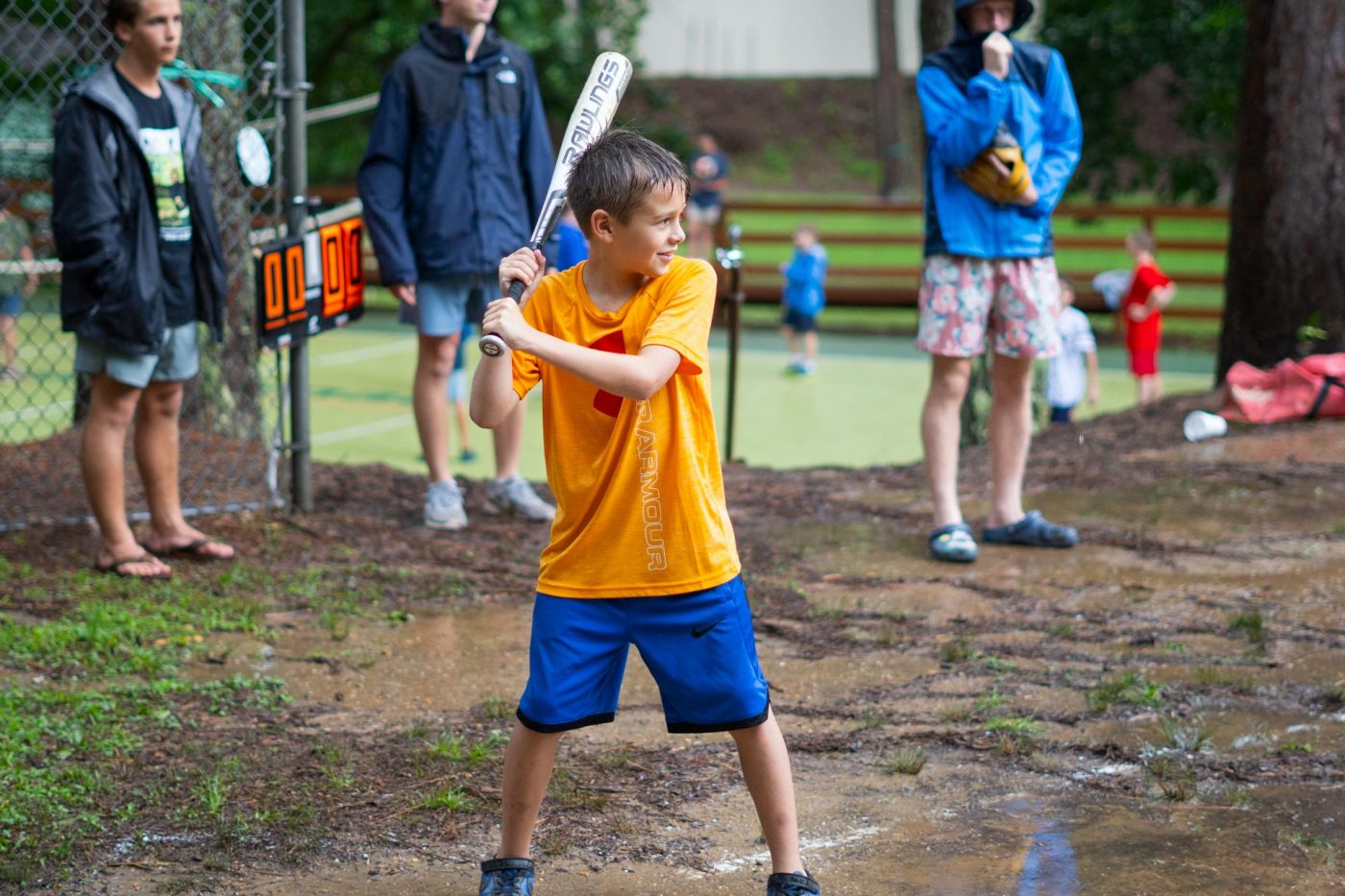 Today on the drenched field two, Jeb’s Jolly Country Boys dominated Pinel’s Purple Poppin Penguins in a smoking game of softball. From the Country Boys, Joseph Bernstein played like a young Hampton Long, and from the Penguins, Graham Newsom played great.