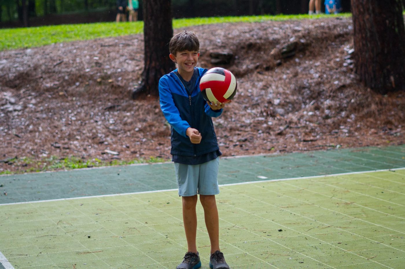Today on the wet court one, Philip’s Flippin Fish slid the Murray and Liles’ Square Floor Tiles into the mud in a decisive game of volleyball. From the Flippin Fish, Jackson Kiser played like a fish surfin on a surf board, and from the floor tiles, Sam Taylor played like Chippy before she got the Camp Mac crud.