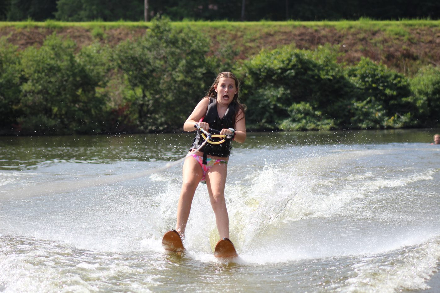 Today at the Camp Mac school of skiing, the girls came down and passed off some classes, and there were some first time skiers.