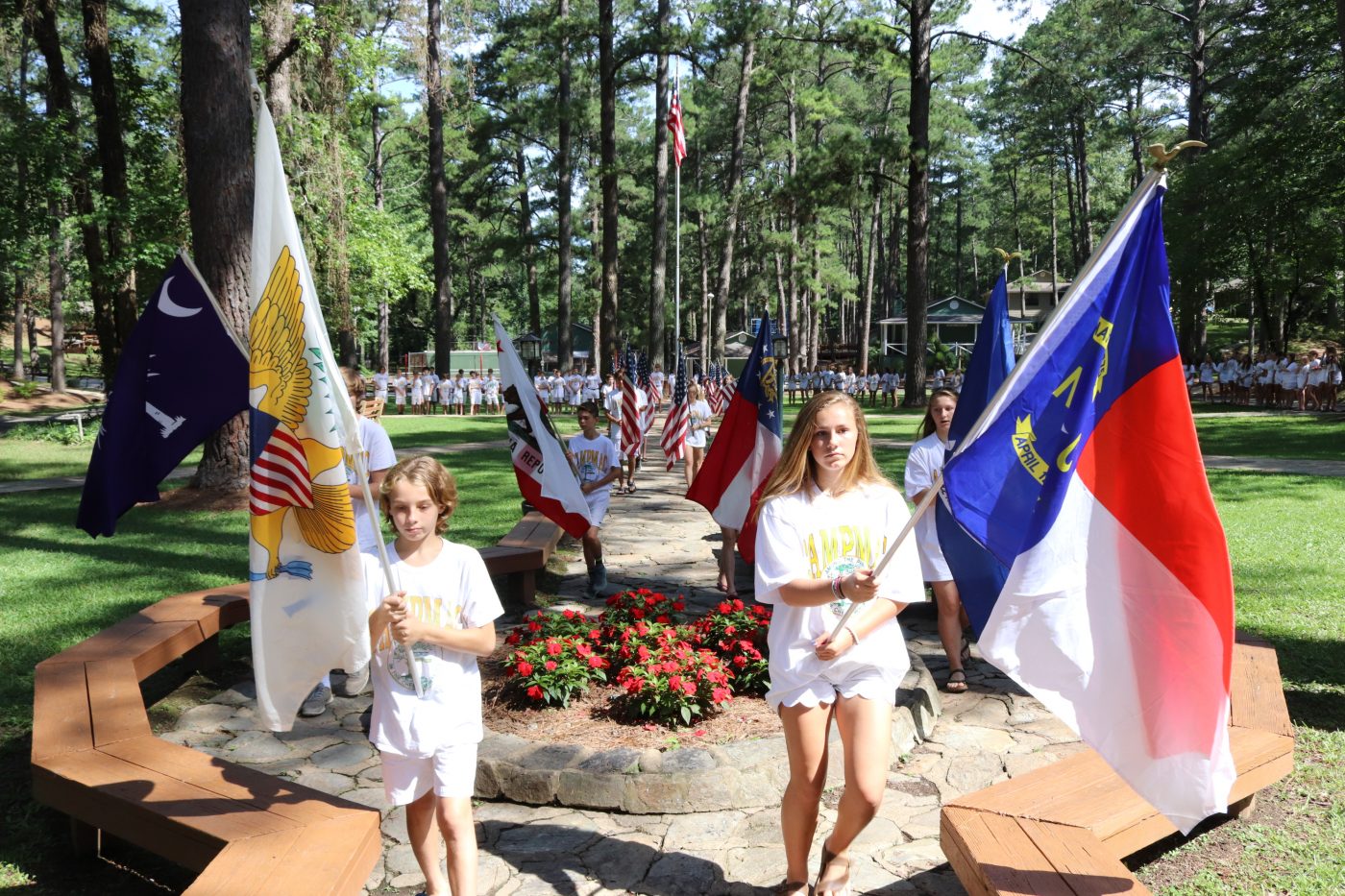 This morning, we had Camp Mac Sunday Breakfast: Sausage, Biscuits, Juice, Milk, and Assorted Cereal. For lunch, we had Corn Dogs, French Fries, PB&J, a Salad Bar, and Cookies for dessert. For supper, we had Pot Roast, Carrots and Potatoes, Green Beans, Rolls, PB&J, a Salad Bar, and Oreo Poke Cake for dessert.