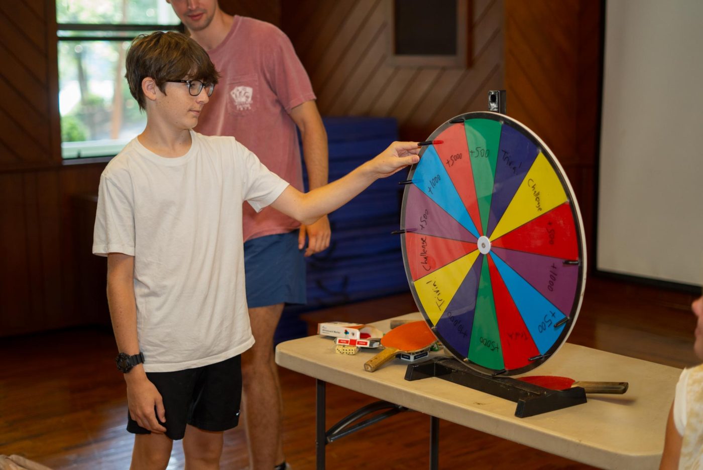 Today at fun and game the boys played some Camp Mac Wheel of Fortune! From first period, the sigma scorpians won with $26,750. From second period the Sweetners won with $37,500. From third period, the Orange Will Kells won with $26,500, and from fourth period, Glady's Gladiators won with $24,000. The winner of the ratta tatta hatta is Richard Delaney.