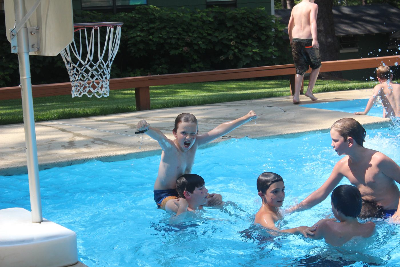 Today at swimming, we played a few games of basketball. For JV, Shrek's Traffic Cones came in first with MVP Jack Bright. In second place, we had the Dad Dominators with MVP Mack Delaney. For varsity the Bingo Bongos came in first and Mack Marstson was the MVP.