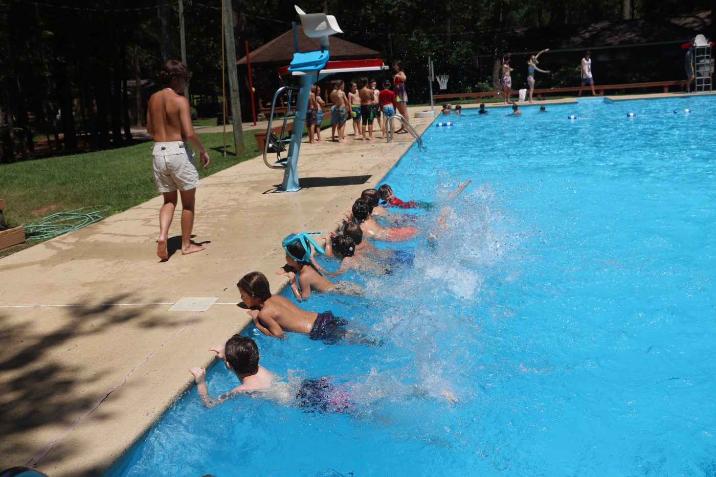 Today at Brady and Emma's watering hole, the fellas came down and practiced their freestyle using the buoys of glory. From the rookies Lassiter Silsbee won Red Light Green Light. From the Hotshots Wesley Young won Red Light Green Light. From Jayvee, Jeb Preston won the stride jump contest. And for the freestyle race the MVPs were Charlie Magid, and Will Feidler.