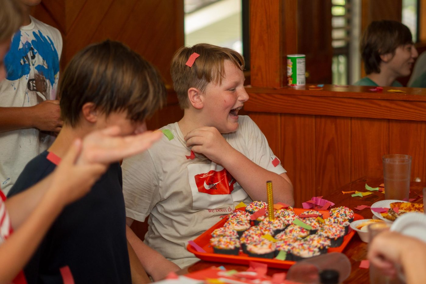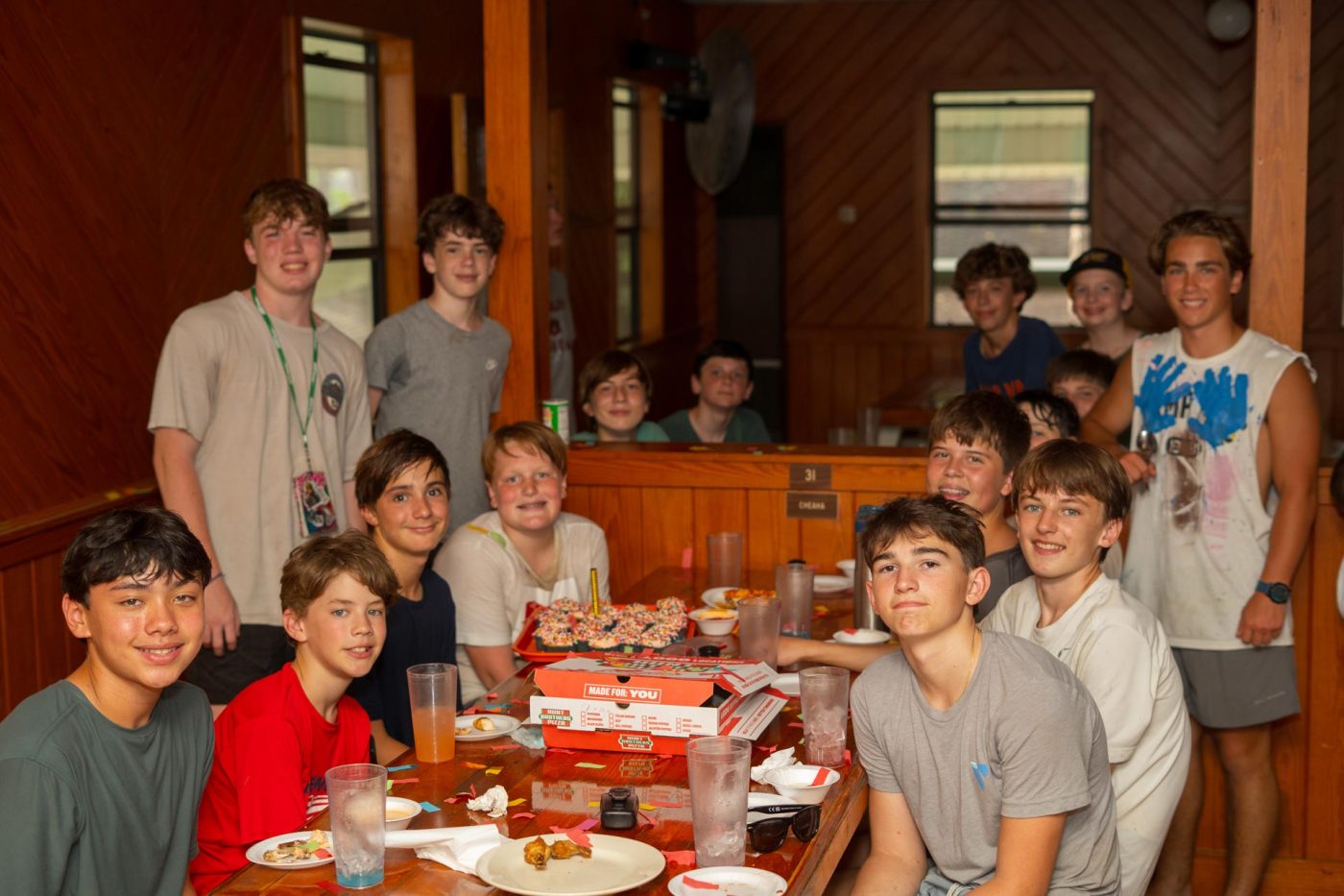 From the Dining Hall This morning we had sausage, eggs, grits, and donuts. For lunch, we had turkey bacon wraps, chips, and cookies. For Dinner there was pizza and wings with ice cream for dessert.