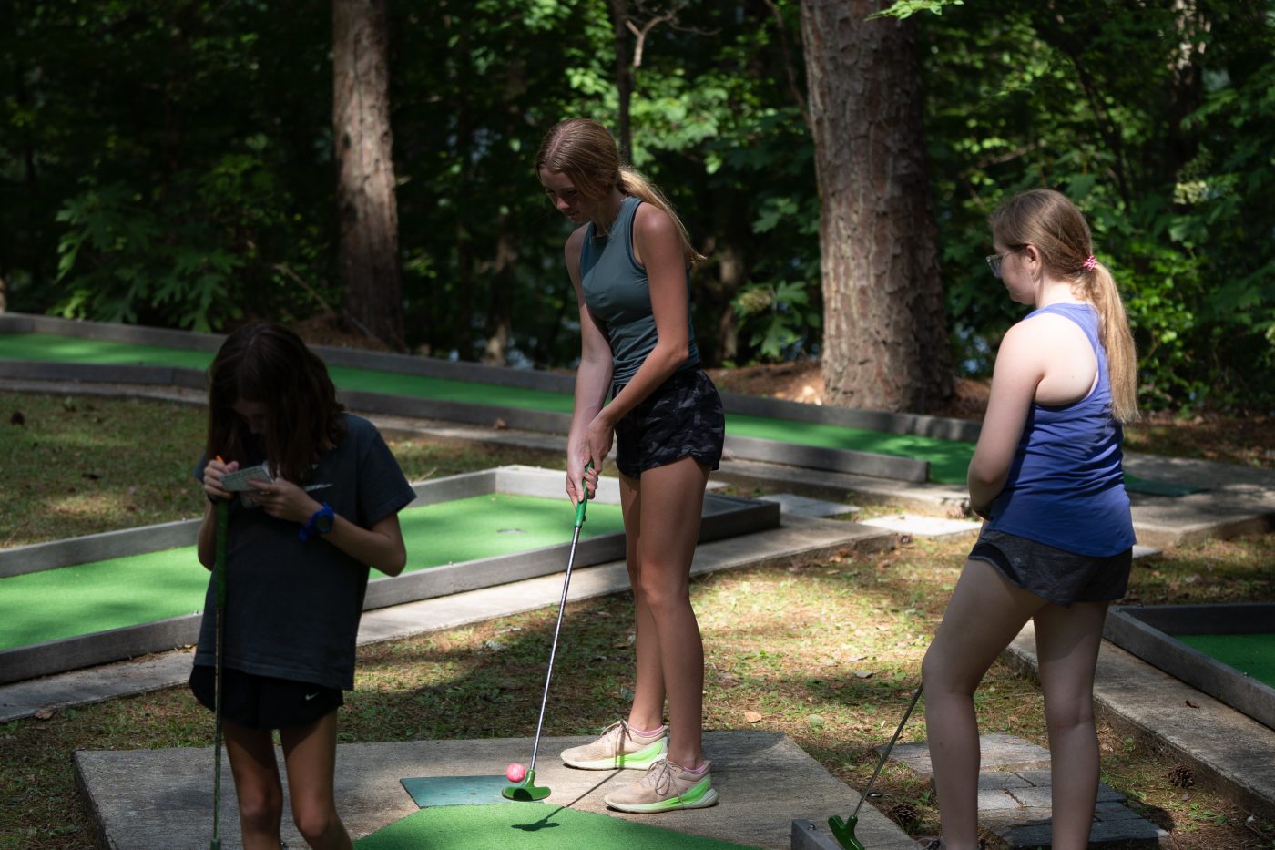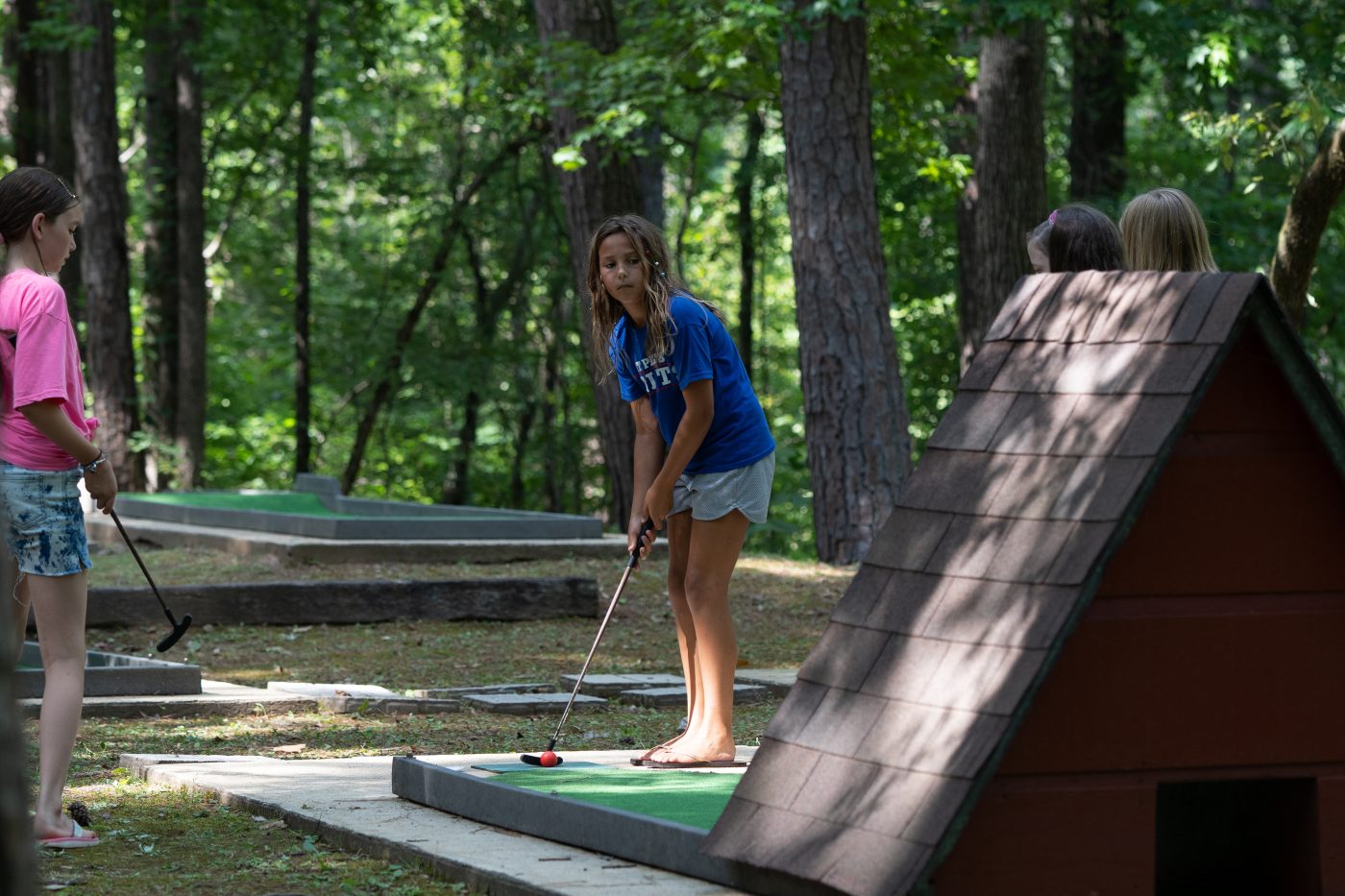 Today the girls came down to the Ole Camp Mac Green and had a Putt-Putt Tournament. The Power Putt Girls beat the Tiny Golfer Pros in a close game.