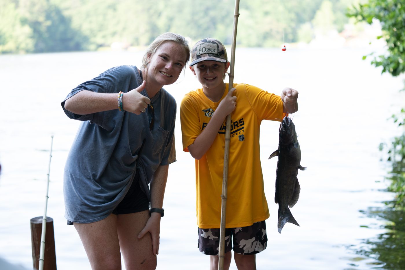 Today for Cabin Time, Chinnabee came down to the Ole Camp Mac Fishing Hole and caught some fish. Jett Gucker caught a Bluegill and Lee Miller caught a catfish.