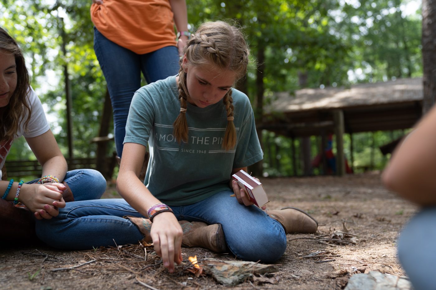Today at Wilderness Skills, the girls came down to Wilderness Skills and we had a String Burn Competition for Fire Day. From the Wranglers, The Peppy Pioneers won. From the Rough Riders, “Can We Buy a Fire?” won. From the Drovers, The Flame-i-nators won.