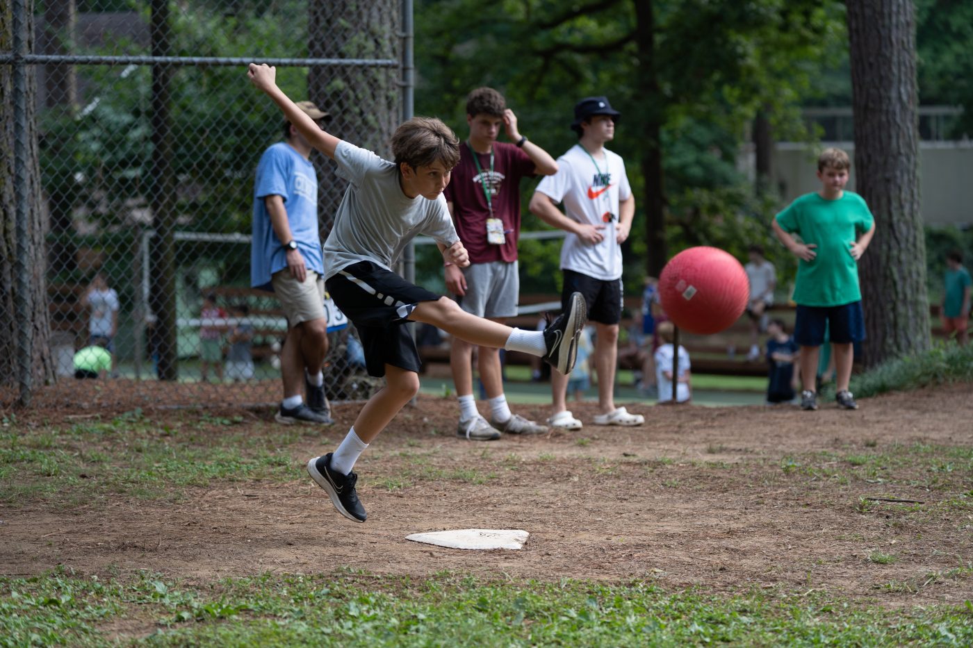 Today on the Sweaty Field 1, Boon’s Big Ballers walked off against Jimmy’s Jocks in a nail-biting game of Kickball. From the Ballers, Callan Rainer played like a Kickball star. From the Jocks, Ledge Searcy played like a young Sig James.