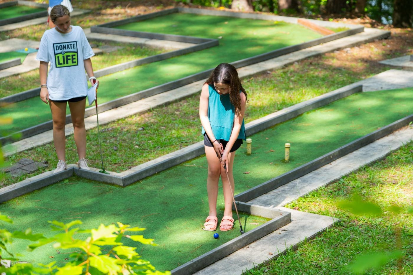 Today at girls putt putt they had a tournament. They split up into the green team and the white team. The green team won with 381 strokes, and the MVP was Maryellen Clement with 51 strokes. The MVP from the white team was Allie Holcomb with 55 strokes.