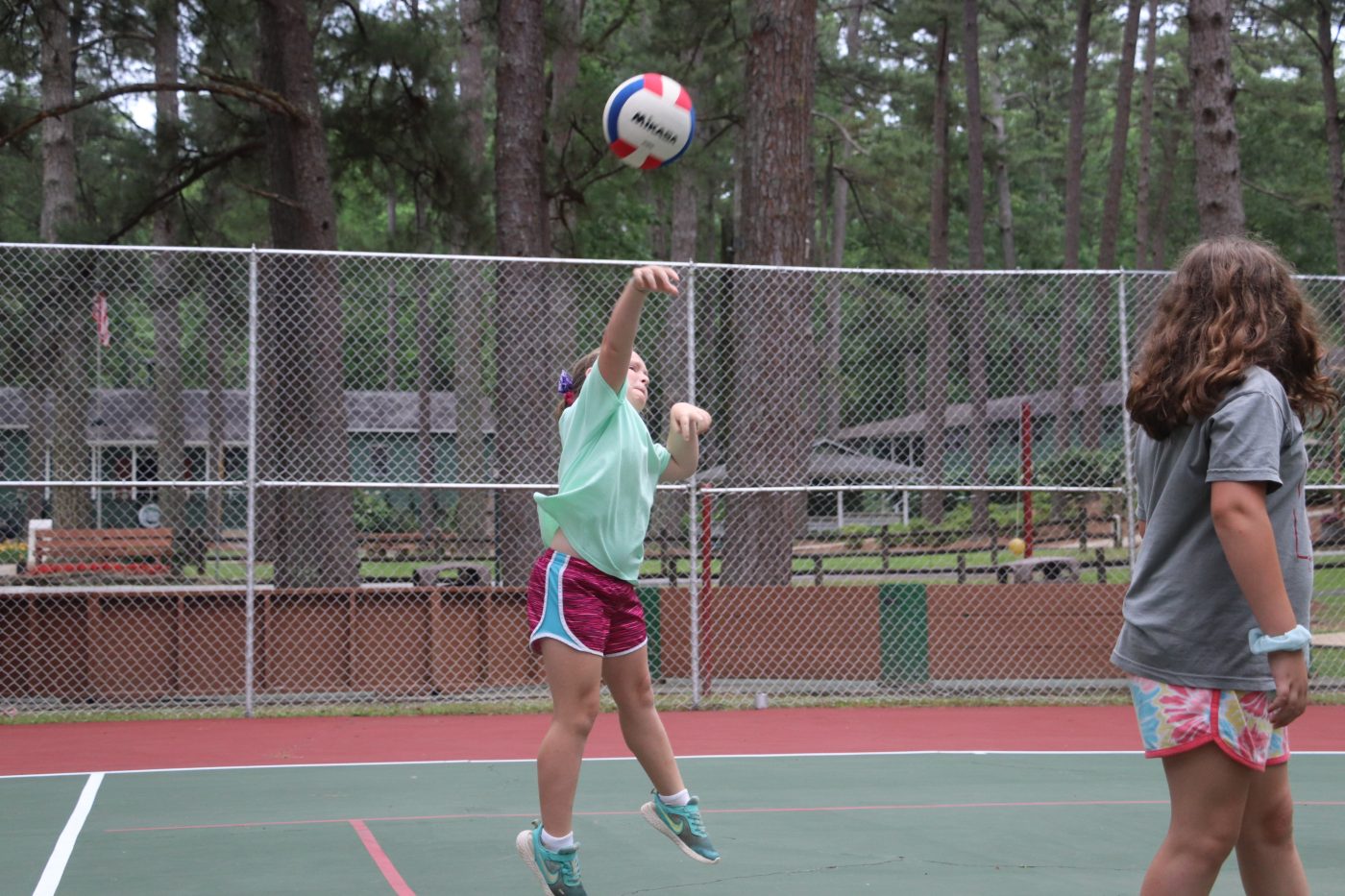 On the bright green lovely court 2, the Camp Mac Diamonds dominated the Camp Mac Queens. For the Diamonds, Pierce Lawler played sharp. For the Queens, Elise Grijalva played like true royalty.